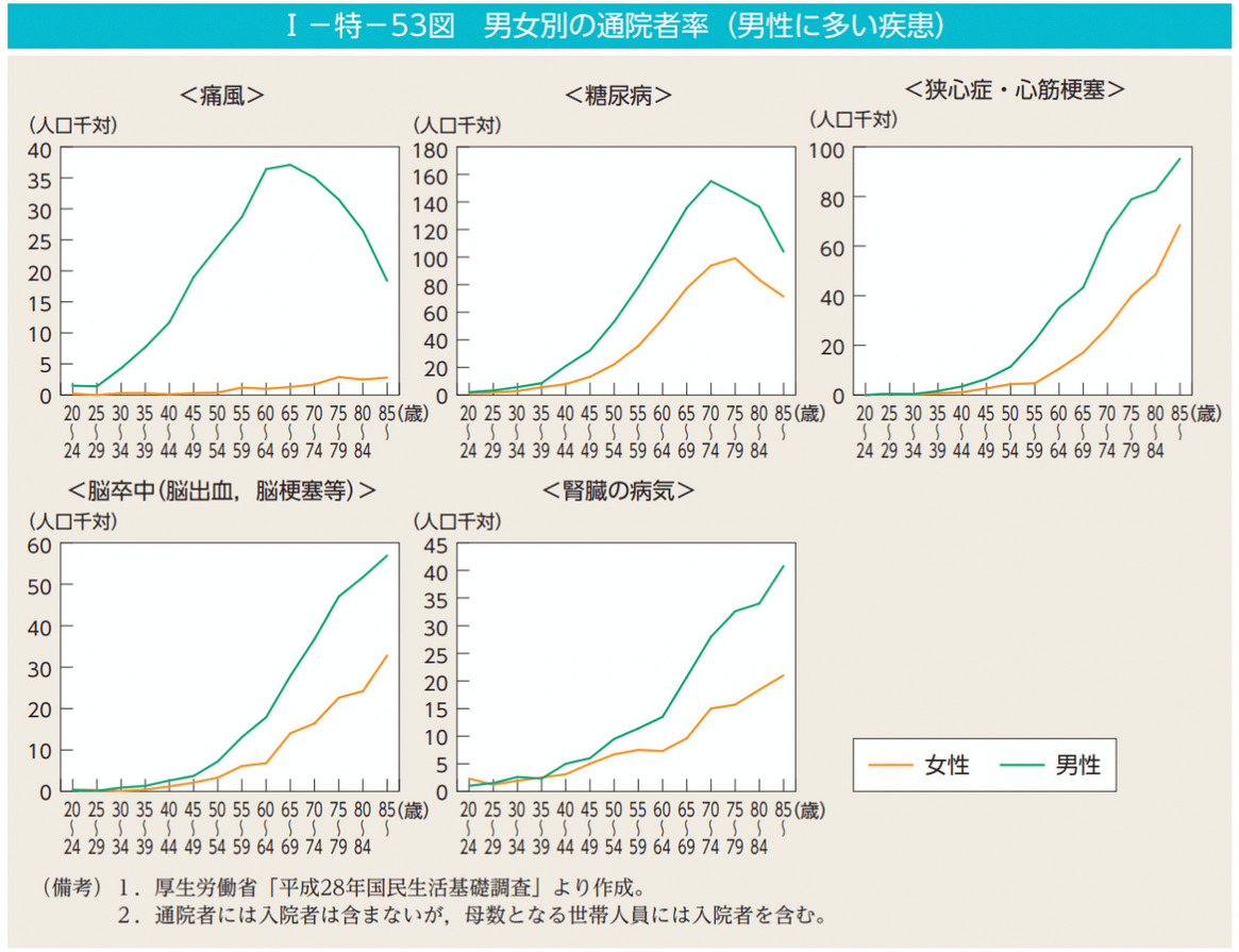 【出典】内閣府「男女共同参画白書 平成30年版」男性に多い疾患