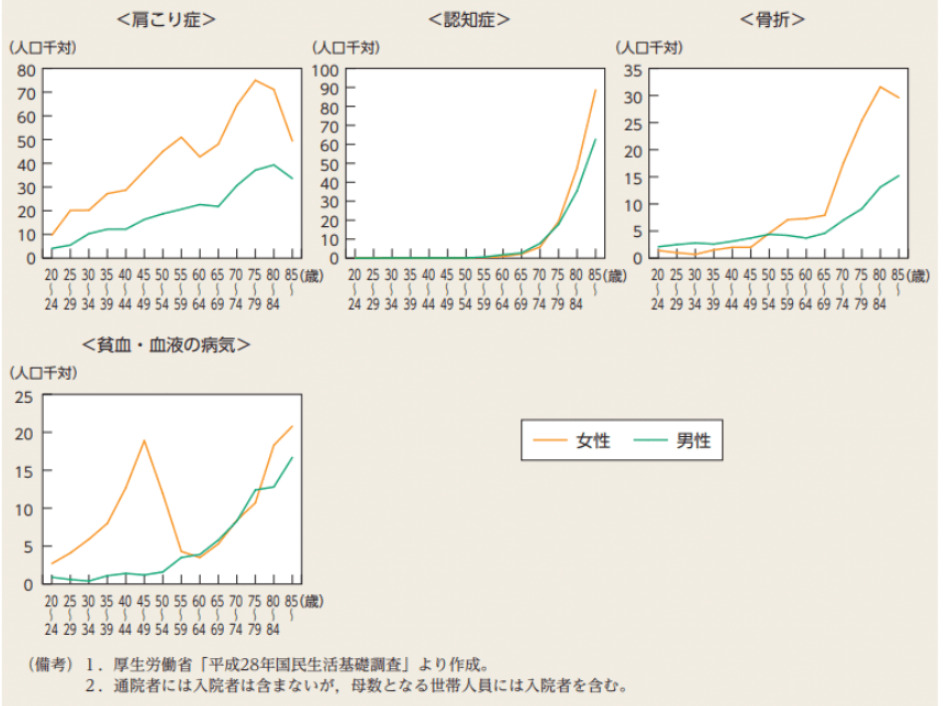 【出典】内閣府「男女共同参画白書 平成30年版」女性に多い疾患