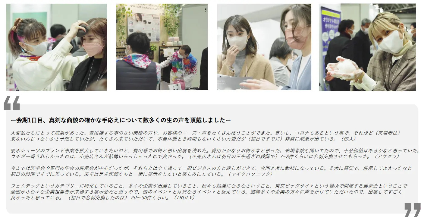 前回開催時の出展社様の声はフェムテックゾーンの開催報告。下記に一部を抜粋(クリックで拡大可)。