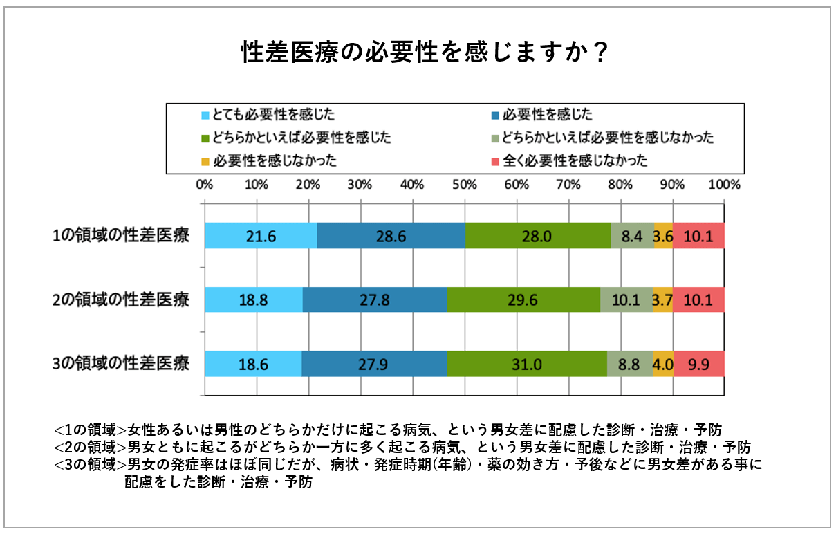 医療界・ヘルスケア業界で「ジェンダード・イノベーション(性差医療・性差ヘルスケア)」が拡大する一方、女性生活者の「性差医療・性差ヘルスケア」に対する認知や需要は、どれほどあるのか?20代〜90代の女性2,000人に調査を実施したところ、言葉の認知度は1割未満と低いものの、性差に着目した医療の必要性を感じている女性は約8割でした。性差を考慮した治療やヘルスケア商品・サービスは、女性患者や女性生活者の間でも需要が高まっていくと同時に、利用・購入の際の「選択基準」になっていくと考えられます。