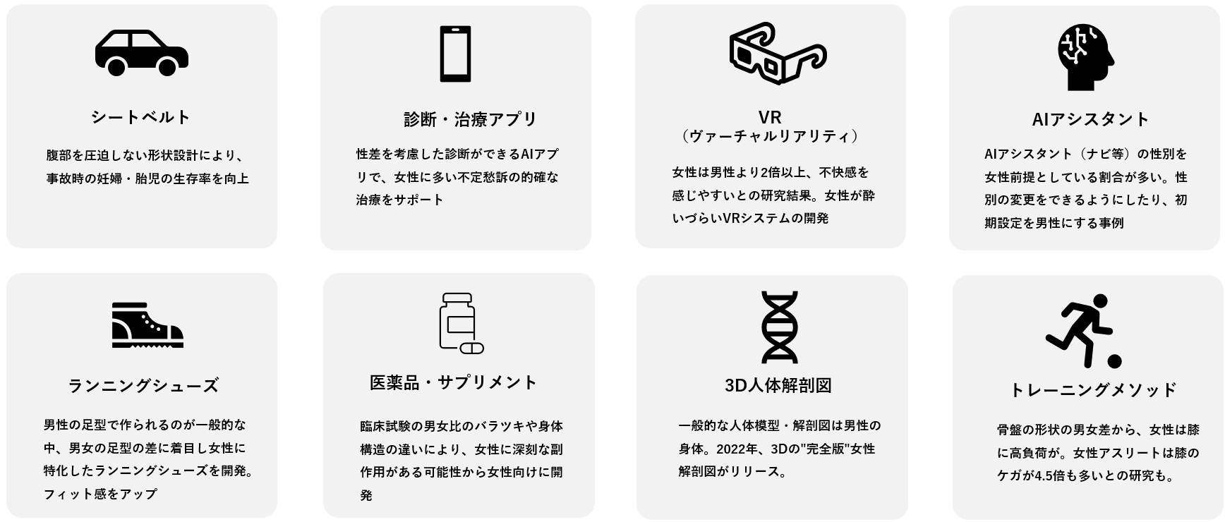 「ジェンダード・イノベーション」とは、科学・技術・政策など幅広い領域において男女の性差分析(生物学的性別・社会学的性別※)を取り込むことで、新しい視点を見出しイノベーションを創出することを指します。成人男性を基準に研究開発や意思決定がなされてきた社会・産業界を大きく変革する概念として欧米を中心に広まり始めた「ジェンダード・イノベーション」は、昨年ごろから国内でもその重要性が認知され始めています。命に直結しやすい医療界・ヘルスケア業界においては特に必要とされている考え方で、今後のヘルスケア業界のスタンダードになると言われています。(※)ここで指す「性差」は男性、女性、多様な性(心と体が一致しない性等)を含みます