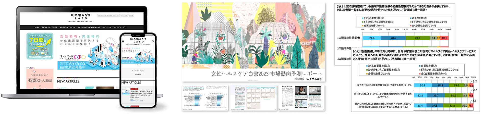 弊社は「女性ヘルスケア」に特化して、ビジネスカンファレンスの企画・開催、BtoB展示会の企画・開催、BtoCイベントの企画・開催、レポート発行などを行っています。