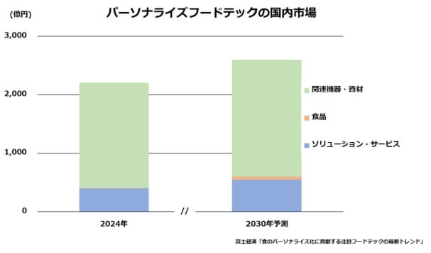 富士経済がフードテック市場の調査結果を発表した。2030年の国内市場は2024年比17.9%増の2,600億円に達する見通し。市場拡大の背景には、単身世帯や共働きの増加、リモートワークによるライフスタイルの変化、生活習慣病の増加などを受けた健康意識の高まり、グローバル化やインターネット普及による消費者意識の多様化があり、大手食品メーカーや家電メーカー、スタートアップの参入が進み、多様なニーズに応える食品やサービスが広がっている。