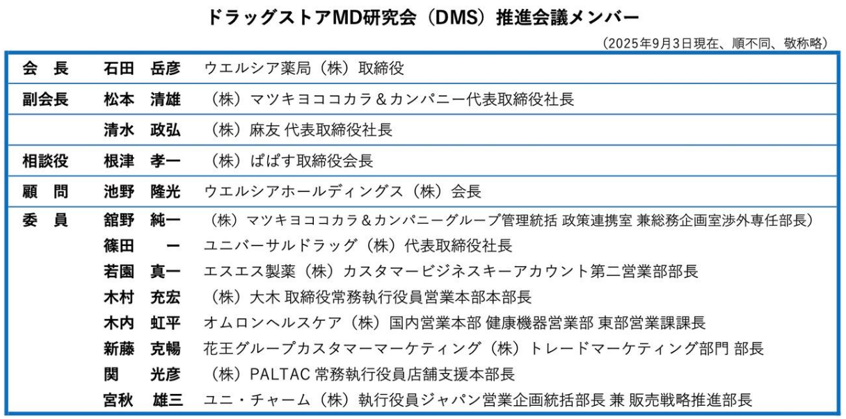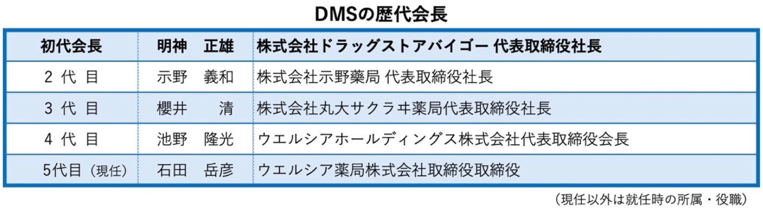 DMSは1995年、「DgSを流通業の主役に押し上げたい」とする有志による「ドラッグストア&ノンフード商品開発研究会」を前身として組織された。「価値ある店づくり」というテーマはやがて「マーチャンダイジング」という研究課題に辿り着き、1996年に現名称に変更している。30年前にDgSの定義はなく、生活者も「医薬品や化粧品、紙製品や洗剤の安売り店」と理解する程度だった。DMSはそのイメージを払拭すべく、「日本版DgSの確立と産業化」並びに「真のMD研究機関の構築」を目的に各種活動を進めてきた。記念セミナーで事務局責任者として挨拶した椎名敏也氏は、DMS創設とその後の原動力となった人物として、初代会長を12年務めた明神正雄氏(当時はドラッグストアバイゴー社長)と、顧問の故・宗像守氏(日本リテイル研究所前代表、日本チェーンドラッグストア協会初代事務総長)の存在に触れ、「明神・宗像両氏の出会いが無ければDgS業界の景色も今と変わっていただろう」と語っている。そのDMSは1997年、経産省の「DgS商慣行実態調査」に協力し、その後「DgSシンポジウム」の開催を経て「DgS産業化推進センター」を立ち上げている。同センターで「DgS運営ガイドライン」の制作ほか、業態や市場に関する各種調査を公表している。