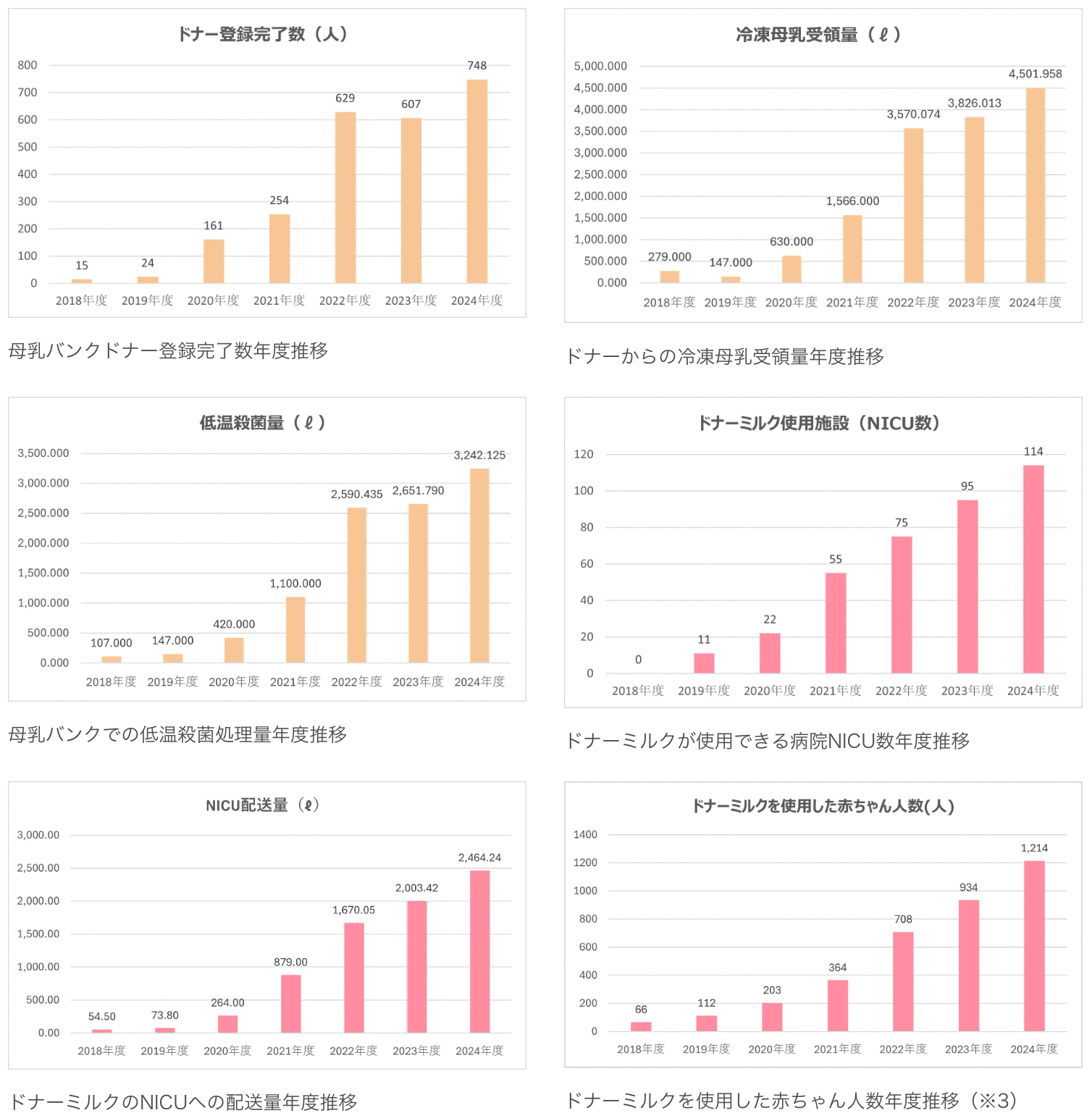 母乳バンクは世界60カ国以上750箇所以上で運営されており、2002年にはWHOが「母親の母乳が得られない場合は、ドナーミルクが第一選択である」と推奨した。日本でも徐々に広まり、日本財団母乳バンクによると、2024年度にドナーミルクを使用した赤ちゃんは1,214人で前年度の約1.3倍に増加した。ドナーミルクを使用できるNICUの数も年々増えており、全国で114施設にまで広がった。一方、必要とする赤ちゃんは年間約5,000人とされ、供給体制の拡充が課題とされている。こうした中、東京都は2025年度からドナー登録施設とドナーミルク使用施設の両方を支援する新事業を開始。普及を後押しする。