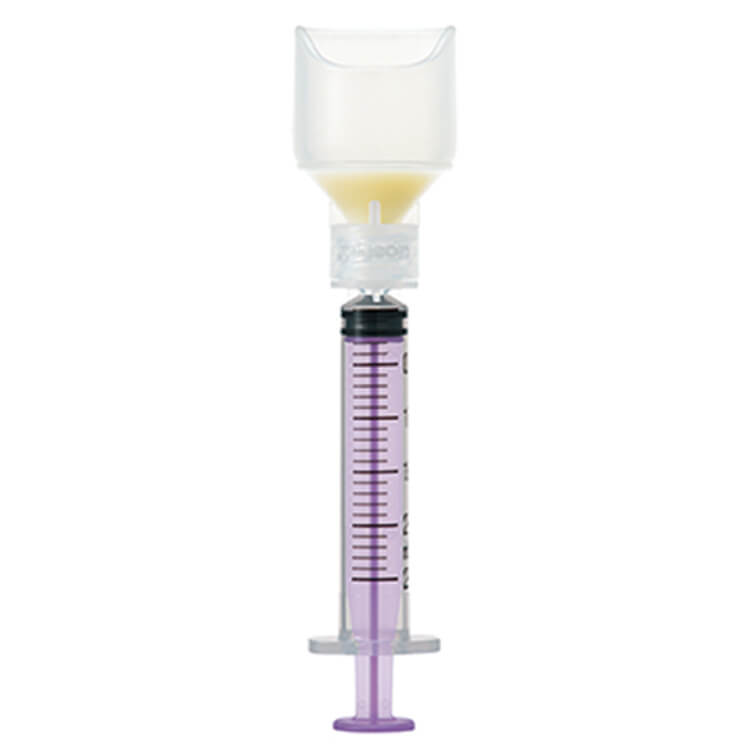 早産児・低体重児のための、初乳採取デバイス「Precious Drop(プレシャスドロップ)」。ピジョンが今月17日に、公式オンラインショップで一般向けに販売を開始した。出産後から数日間だけ出る母乳である「初乳」は、免疫物質が豊富で赤ちゃんを病気から守る。だが量が少ないため、ママが手でしぼりながら一滴一滴をシリンジで吸い取るのは難しい。そういった課題を解決するもので、シリンジに漏斗のようなものを装着して用いる。手でしぼってさく乳し、初乳をすくい取るようにして集める。同社の助産師による発案で生まれたもので、2022年からNICU(新生児集中治療室)などで使用されてきた。これまでは医療機関のみでの取り扱いだったが、赤ちゃんに初乳を飲ませたいママに広く使ってもらおうと、一般販売を決めた。