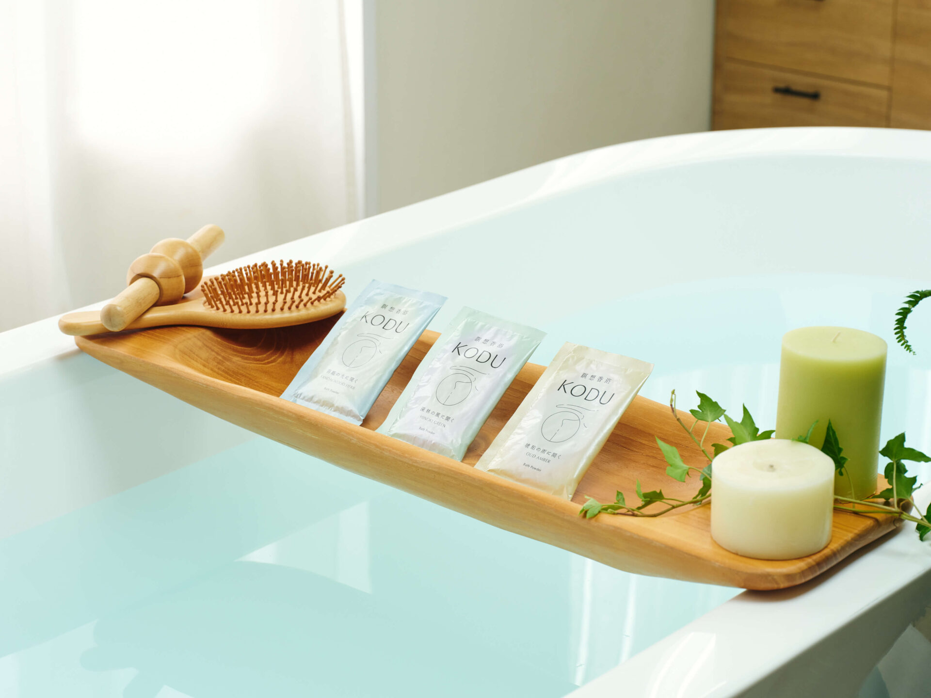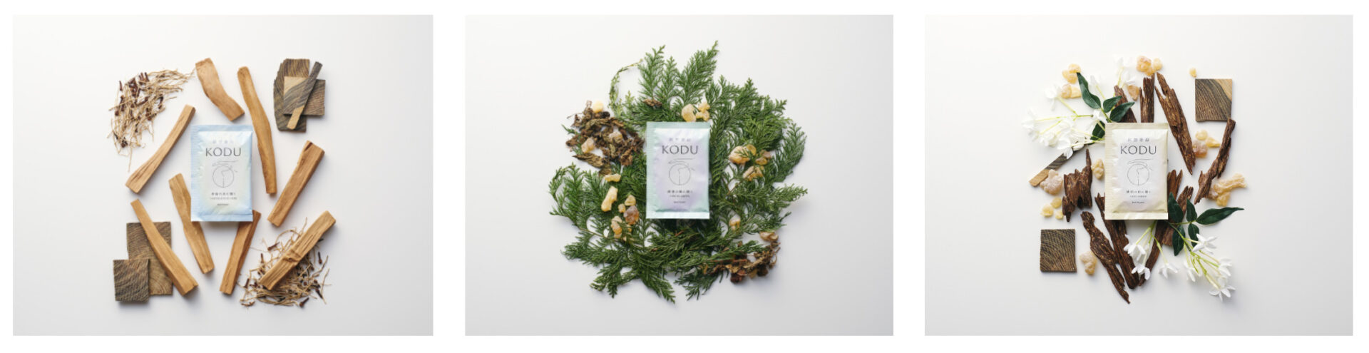 「青雲」などで知られる線香メーカーの日本香堂(東京・中央)は先月末、日本の香文化に着想を得た新フレグランスブランド「KODU(コデュ)」を立ち上げ、第一弾として入浴剤「KODU バスパウダー」3種を発売した。日常を整える新しい瞑想の形「瞑想香浴」を提案するブランドで、香りに集中することで自分自身と向き合い、「素の私に戻る」時間へと導く。入浴剤の香りは、香木を知り尽くす同社の調香師が監修。サンダルウッド、ヒノキ、ウードをキーノートに開発した。