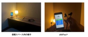 実証では、STUTSが展開する仮眠スペースシェアリングサービス「仮眠を文化に」と、京セラの血流量センサを搭載したイヤホンとAI搭載のアプリで構成される仮眠起床システム「sNAPout(スナップアウト)」を組み合わせる。