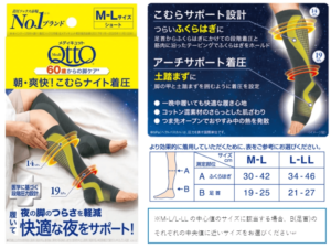 今回新たに発売した「こむらナイト着圧ソックス」では、60歳以上に多い脚に関する悩みのうち、こむら返りに着目した。足首からふくらはぎにかけての段階圧力と筋肉に沿ったテーピングで、つらいふくらはぎをホールド。脚の甲と土踏まずにも着圧を設定した。