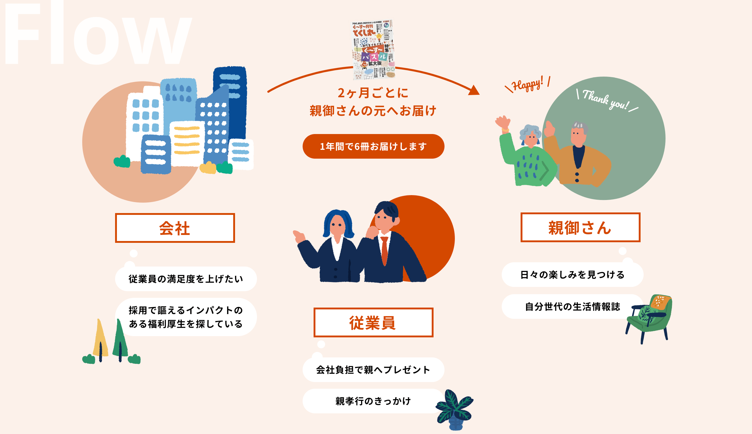 従業員=子どもにとっては親孝行の機会になり、「雑誌、届いた?」と、離れて暮らす親との自然な会話を生み出す。企業側にとっては、従業員の家族まで配慮する姿勢を示せる。試験的に導入した企業からは、離職防止や従業員満足度向上の手応えも報告されているという。