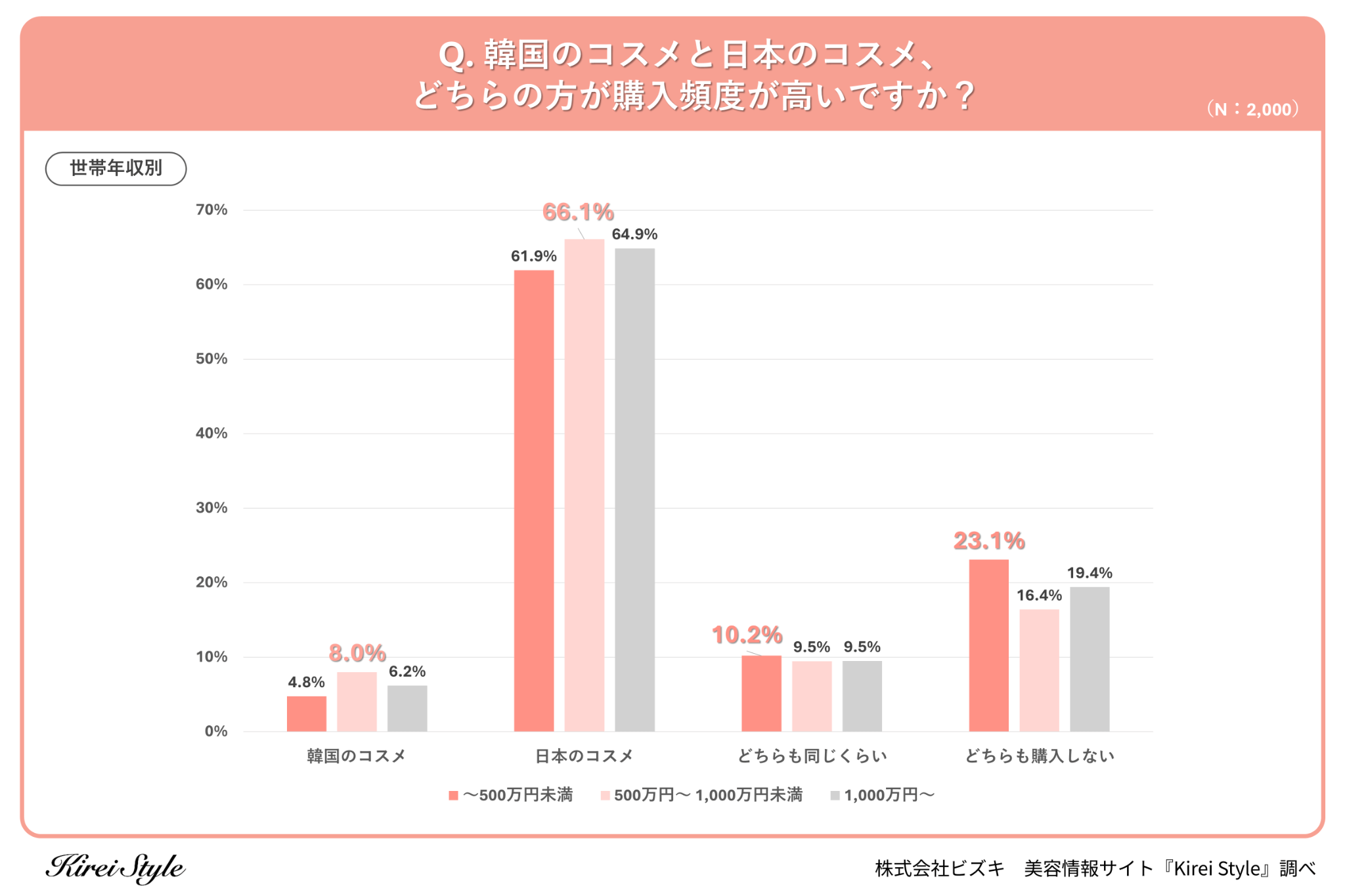 韓国コスメ購入が活発な世帯年収は「500〜1,000万」