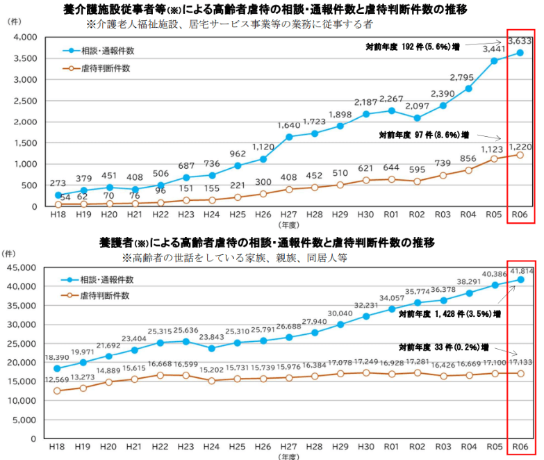 特別養護老人ホームなどの介護施設職員による高齢者への虐待が認められた件数は2024年度、1220件(23年度比8.6%増)となり、4年連続で過去最多を更新した。家庭で家族らによる虐待に関する相談・通報件数も4万1814件(同3.5%増)と最多を記録。高齢者を巡る権利擁護が危機的な状況にある。