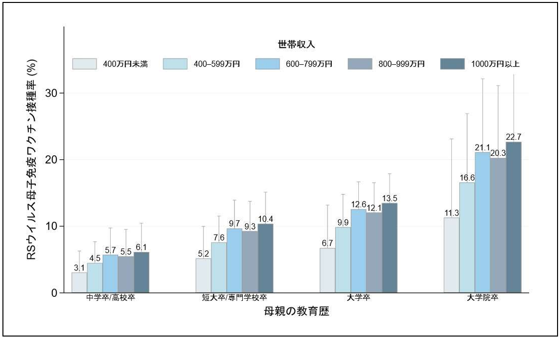 同センターの研究チームは、ワクチンが国内で接種可能になった直後の24年7月から25年8月に出産した女性1279人を対象に実態を調査。この結果、接種を受けたのは全体の約1割に当たる11.6%にとどまった。先行する英米の接種率は30~50%とされており、国内での普及の遅れが際立つ。世帯年収や学歴が高い層ほど接種率が高い傾向も明らかになり、経済力や学歴が、生まれてくる子どもの予防医療に差を生じさせている様子が浮かび上がった。