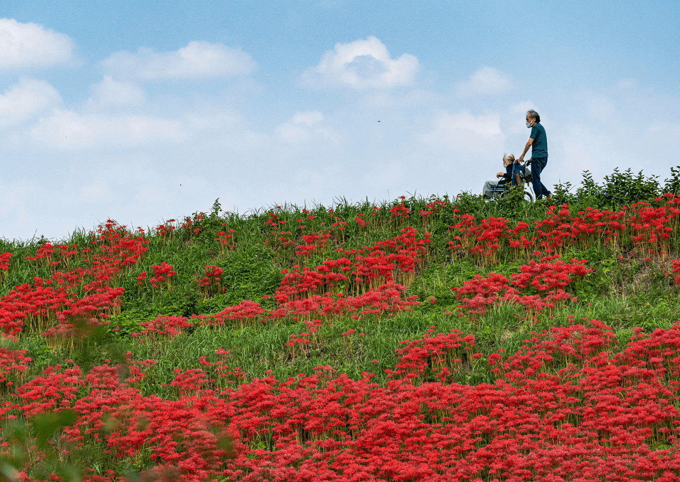 彼岸花が咲く土手を老々介護の二人がのんびり歩く情景をとらえた作品。ベディ氏は「ケアとは『支えること』ではなく、『一緒に風景の中に立つこと』だと感じた。ケアの本質を静かに、しかし力強く伝える作品だ」と評した。