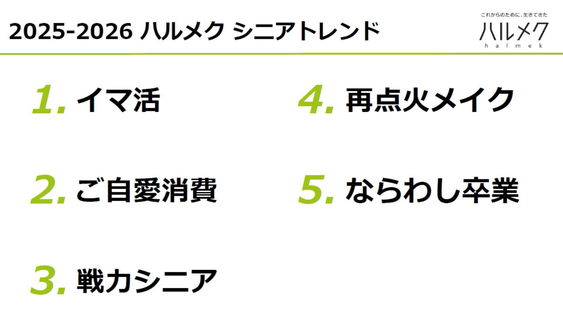 トレンドキーワードの発表にあたり同所所長の梅津順江氏は、「『自分のために時間もお金も使いたい』『元気なうちに、今やりたいことをしたい』という前向きな姿勢が強まっている」とコメント。常識や制約を外して新しいことへ挑戦する“エイジズムからの解放”という長期トレンドに加え、今年は節約疲れ・効率疲れが重なったことが背景にあると見ている。「時間もお金も自分のために使うシニアの存在は、今後の日本の経済と文化を力強く動かしていく」と総括している。